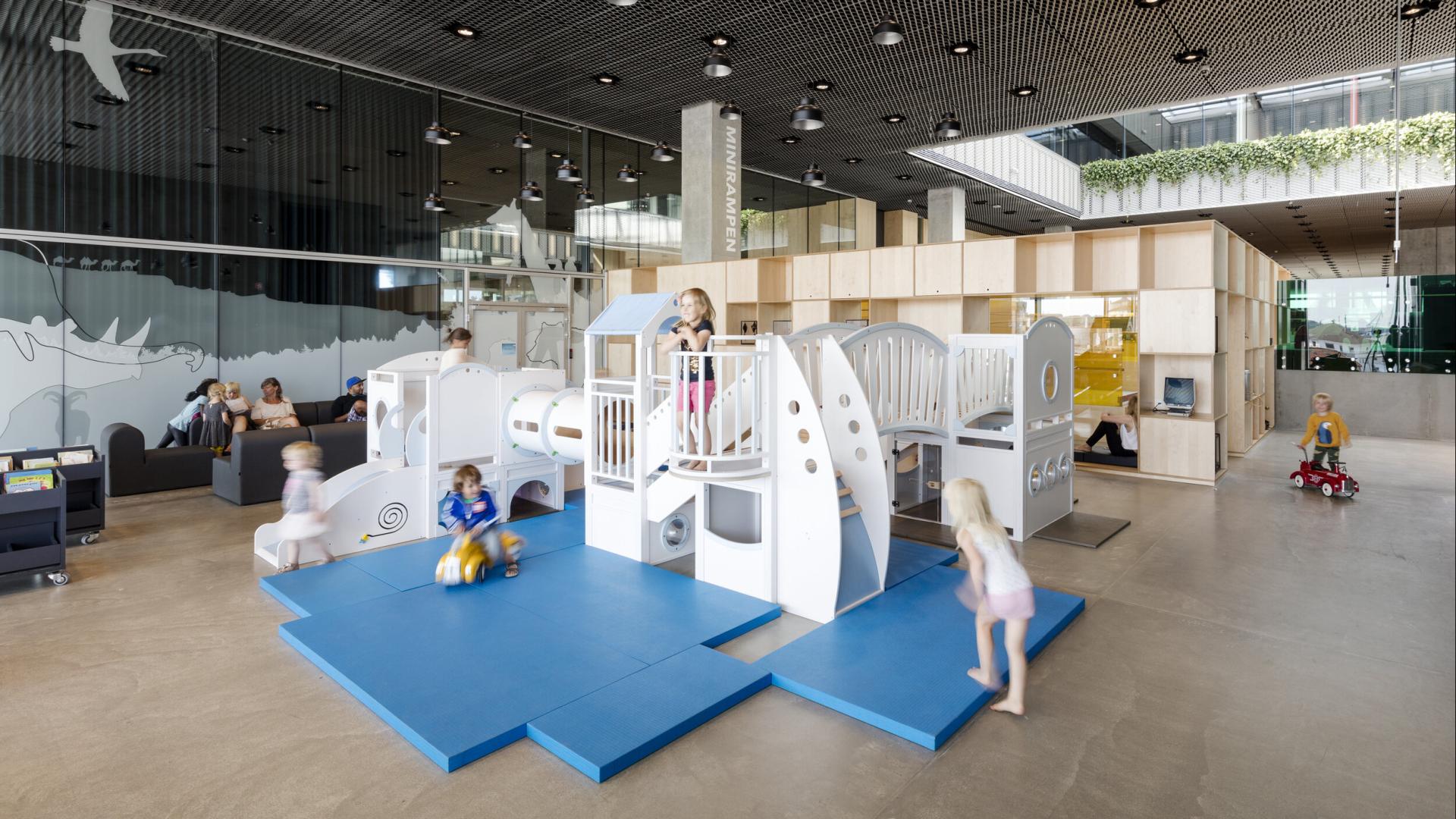 Der findes indendørs aktivitetsområder for både små og store. Trænger I til frisk luft, kan I puste ud og lege videre på den udendørs legeplads Kloden.