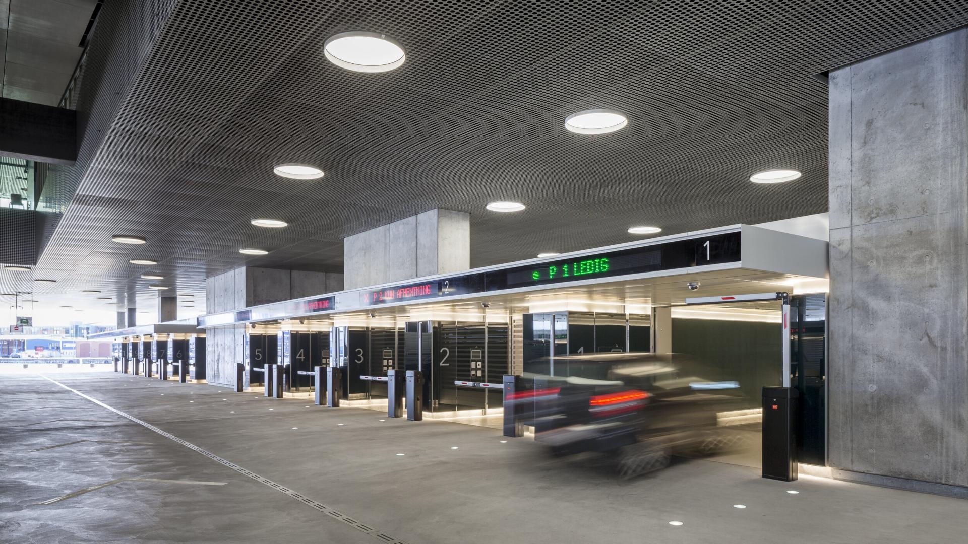 Fra gadeplan er der adgang via de tre udendørs trapper og elevatoren under bygningen. Nedenfor Dokk1 finder du også Ankomstcentret med rulletrappe og elevatorer. Børneafdelingen på niveau 2 nås med de indendørs elevatorer eller via den centrale rampe på niveau 1, hvor der også er trapper med gelænder.